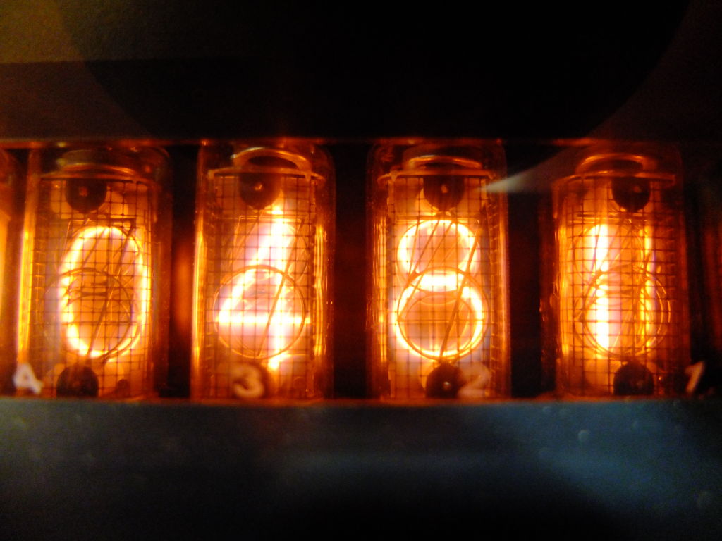 Und natürlich darf man die wunderschönen Nixie-Röhren der zweizeiligen Anzeige des WANG 720C nicht vergessen, in denen jede Ziffer als einzelne Elektrode hintereinander angeordnet ist und wenn eine Ziffer von Strom durchflossen wird, sie durch pures Glühen alle anderen überstrahlt und so ein heimeliges Licht in der Dunkelheit des Labors verströmt. 🙂