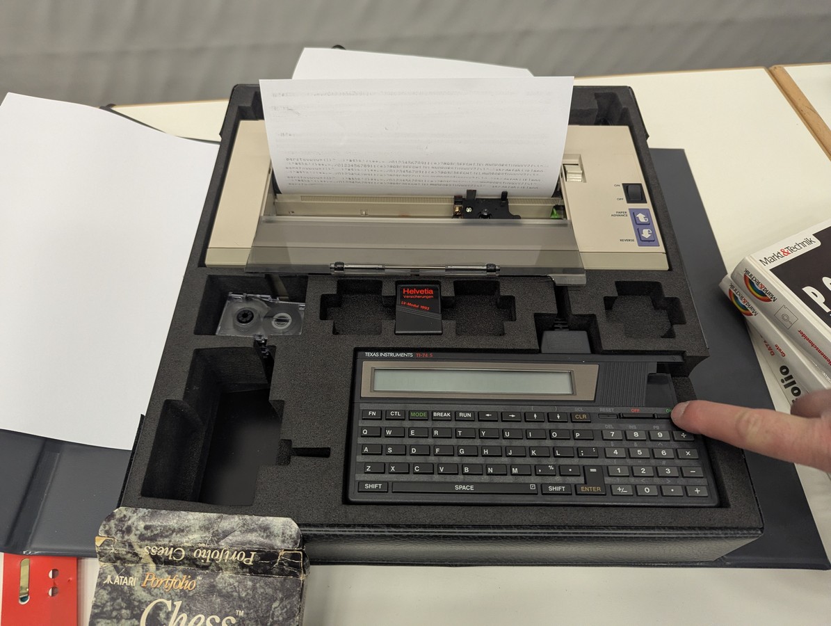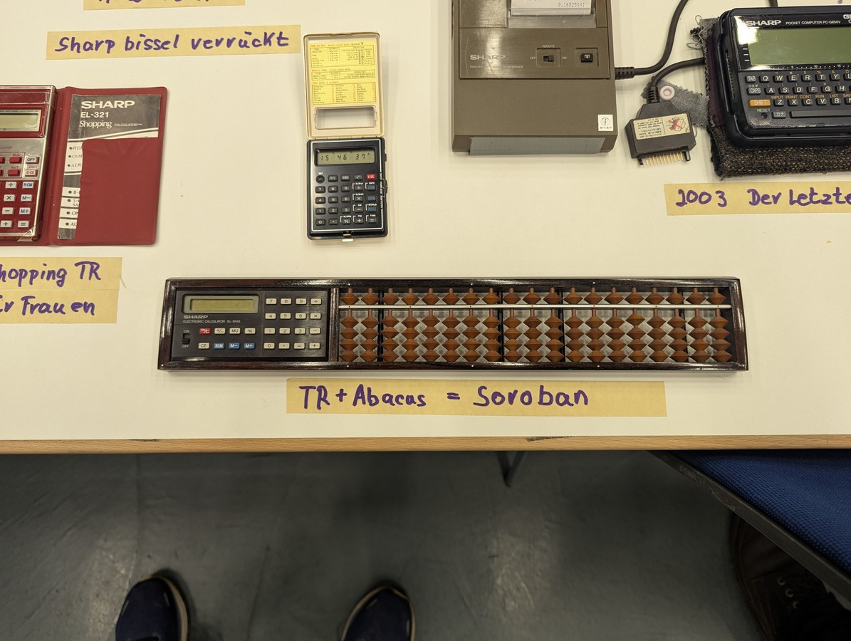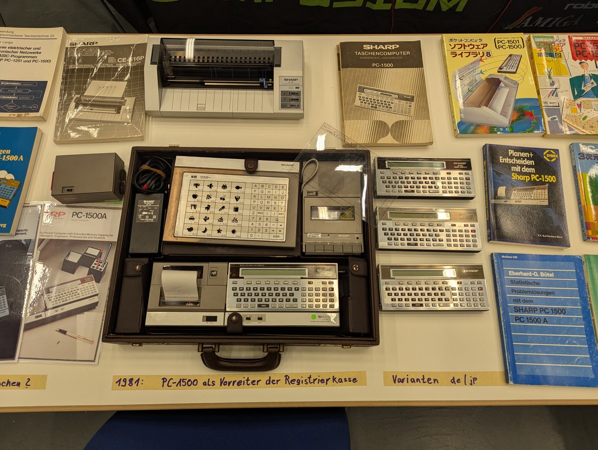 Von denen hatte Peter zwar keine da, aber dafür mehrere PC-1500 und viele PC-14xx Pocket Computer und einen, der einen eingebauten Abakus besaß! Wozu das gut ist muss ich noch heraus finden. Denn obwohl Peter wirklich Begeisterung für seine Geräte versprühte, war er schnell abgelenkt, wenn ihn jemand anderes ansprach. Das ist mir generell auf der Classic Computing aufgefallen, ich hatte öfters den Eindruck, dass, wenn jemand anderes meine Gesprächspartner ansprach, ich plötzlich unsichtbar für sie war. Kann man aber verstehen, denn so richtig viele Besucher waren nicht da und ich denke dass es ja vor allem auch ein Treffen untereinander war.