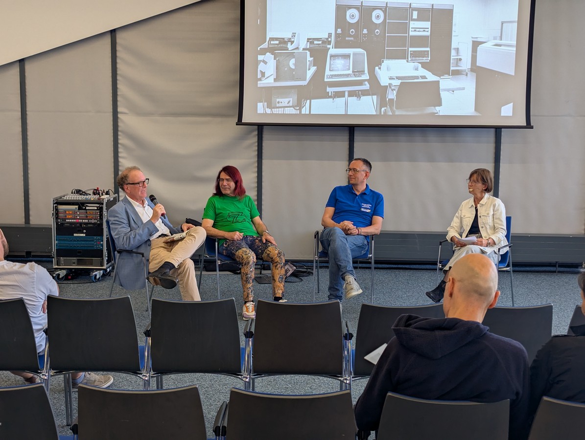 Am Nachmittag gab es dann noch eine Podiumsdiskussion mit Olaf Zimmermann (Geschäftsführer des Deutschen Kulturrates, Herausgeber von Politik & Kultur), Klemens Krause (Computermuseum Stuttgart), Hans Hübner (Vorsitzender Verein zum Erhalt klassischer Computer e.V.) und Barbara Haack (Leitung Kommunikation Deutscher Kulturrat) die die Moderation übernahm. Das Thema war: Alles Pixel – Was hat Retrocomputing mit Kultur zu tun?