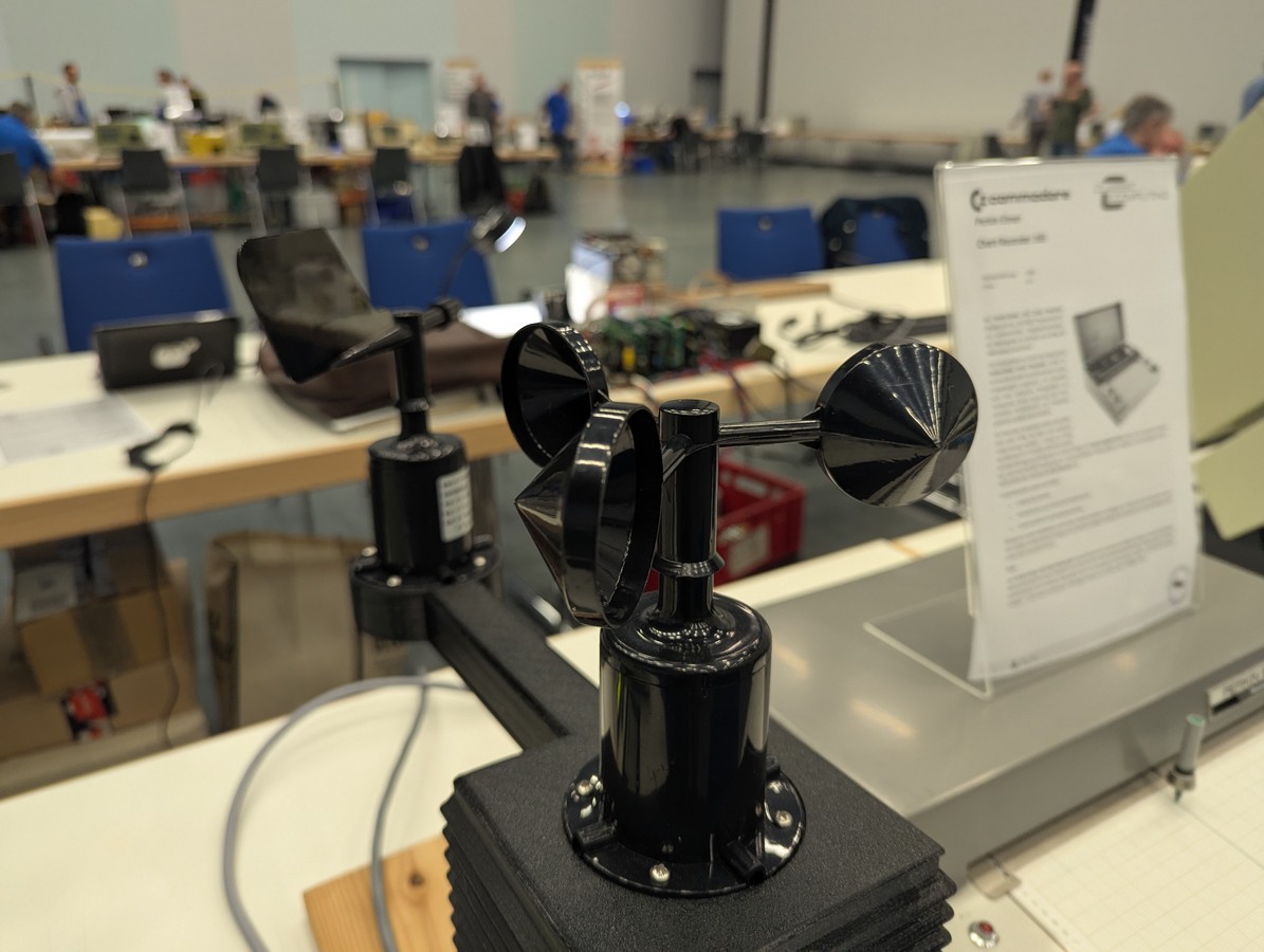 Da ich auch oft Sensoren mit Mikrocontrollern verbinde, hat mir der Aufbau von Thomas gut gefallen. Hier wurde laut Text eine Wetterstation über einen AIM-16 mit einem Commodore PET verbunden. Der Aufbau zeigt allerdings einen Commodore 8032. Ich hab’s ausprobiert und verwandelte mich in Wind, in dem ich gegen den Propeller pustete und sich auf dem Display prompt die Windgeschwindigkeit erhöhte!